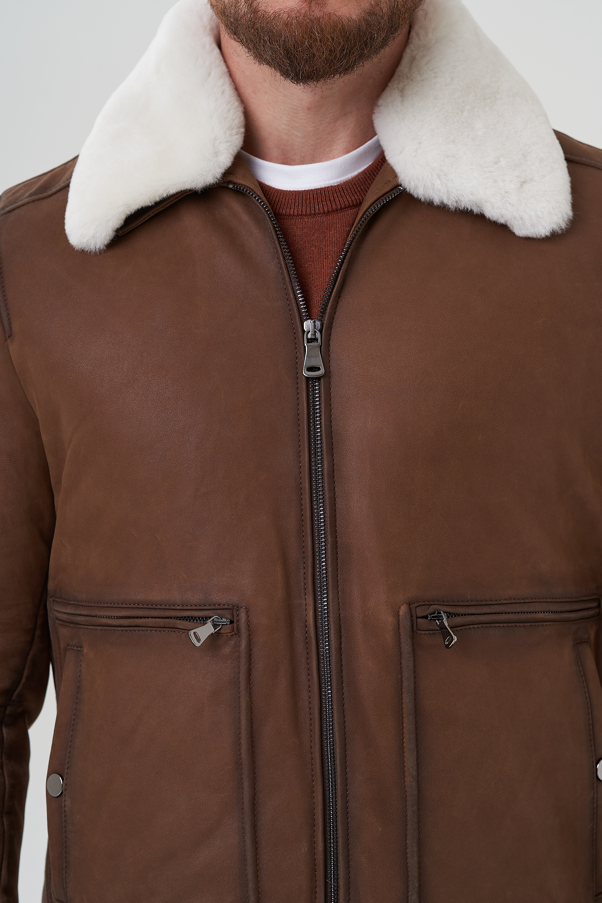 Тип ворота - отложной, отделка овчина белый