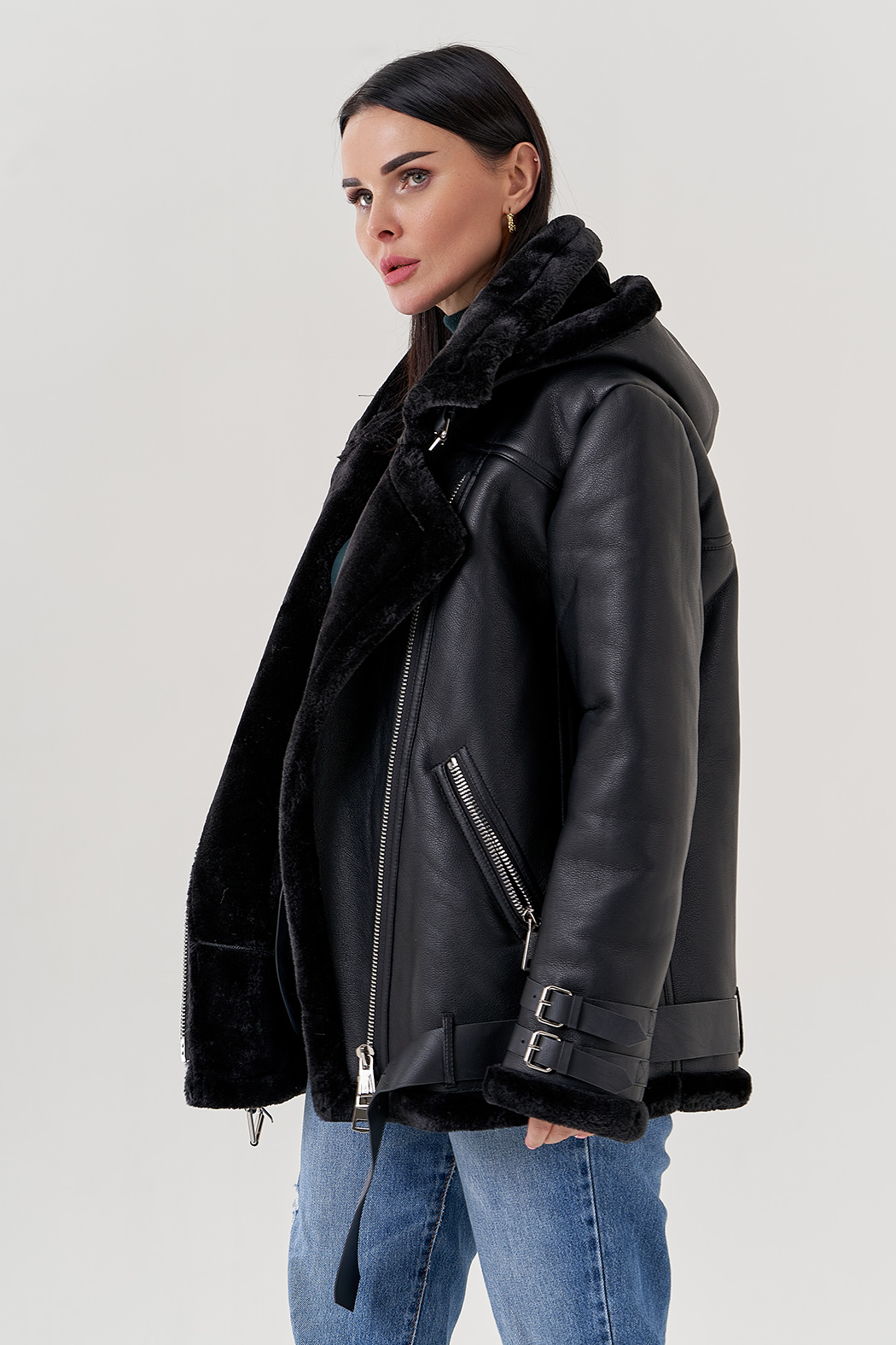 Тип ворота - съемный капюшон, эко мех черный