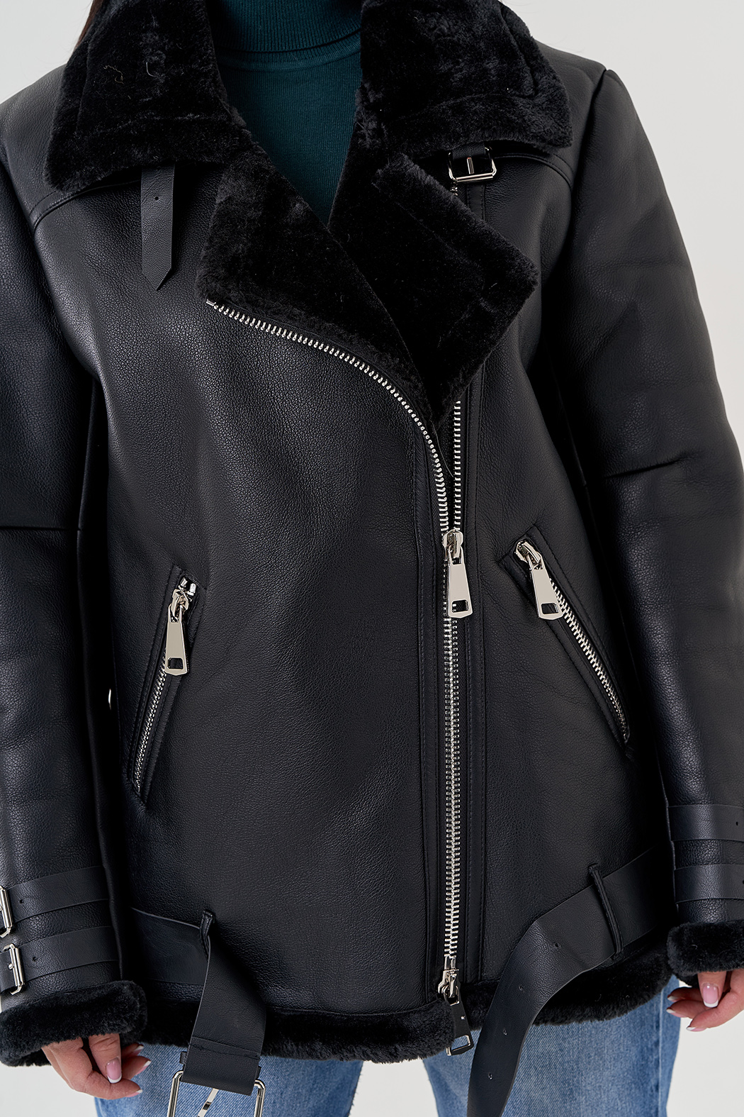 Для жителей Каменска-Уральского у нас действует беспроцентная рассрочка и кредит на выбранный товар — Женская дубленка пилот из эко кожи черно цвета артикул kamensk-uralskij79311. Если у вас остались вопросы напишите или позвоните нам, и мы на них ответим.
