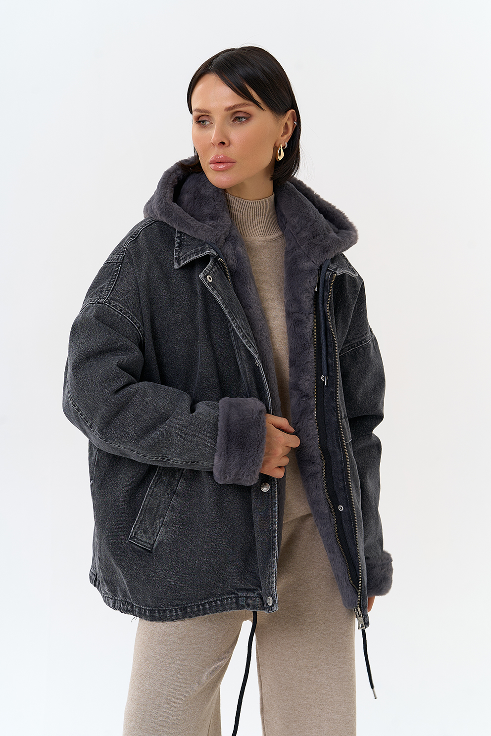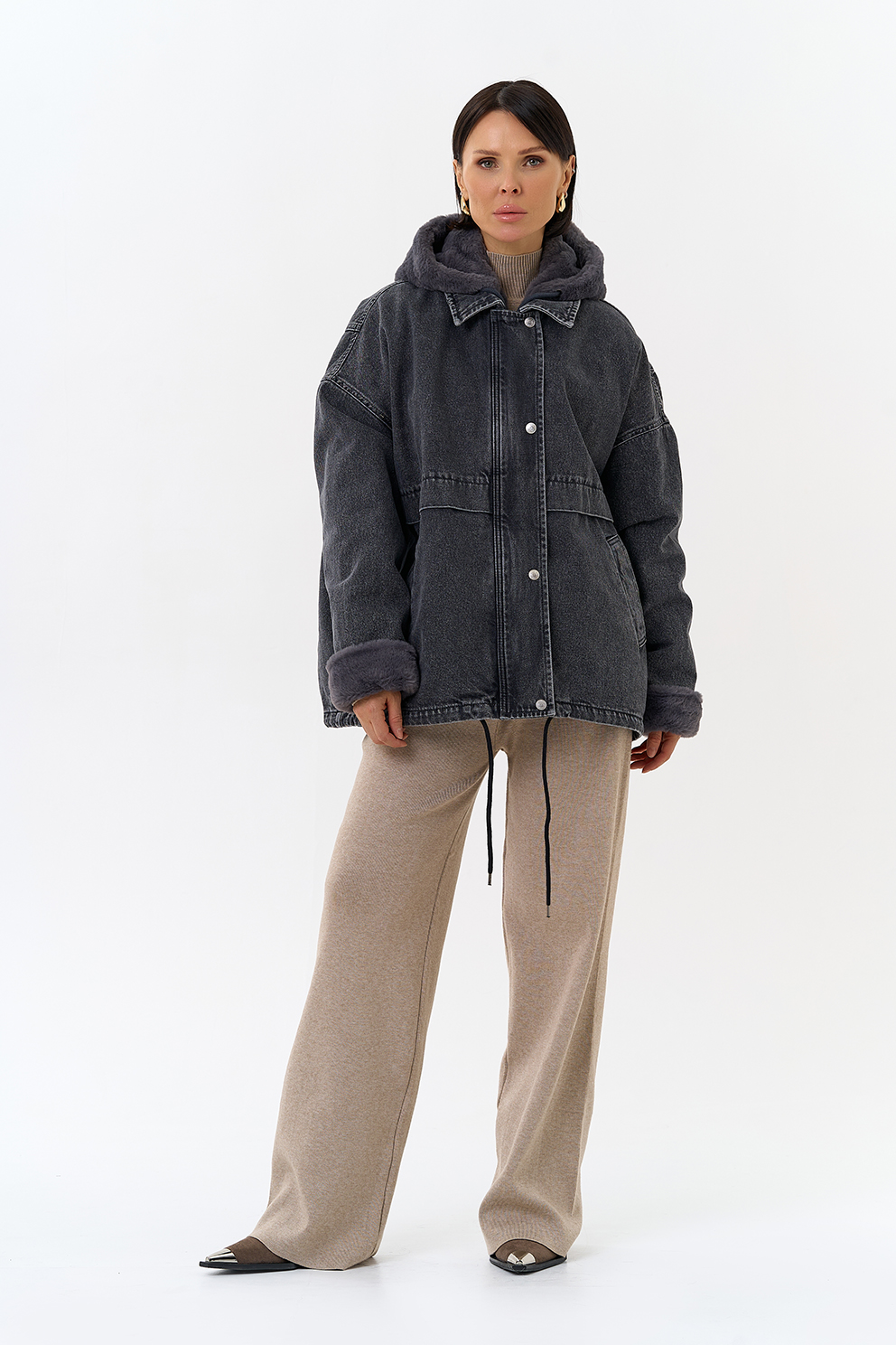 Крой воротника - съемный капюшон, отделка эко мех