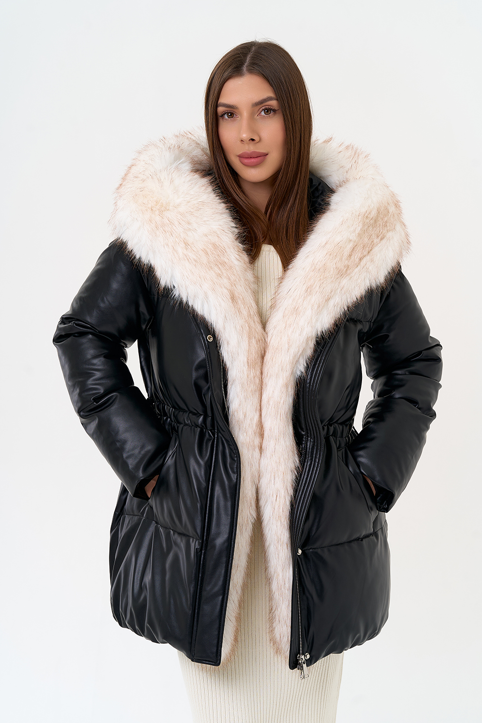 Отделка воротника - эко мех, цвет белый