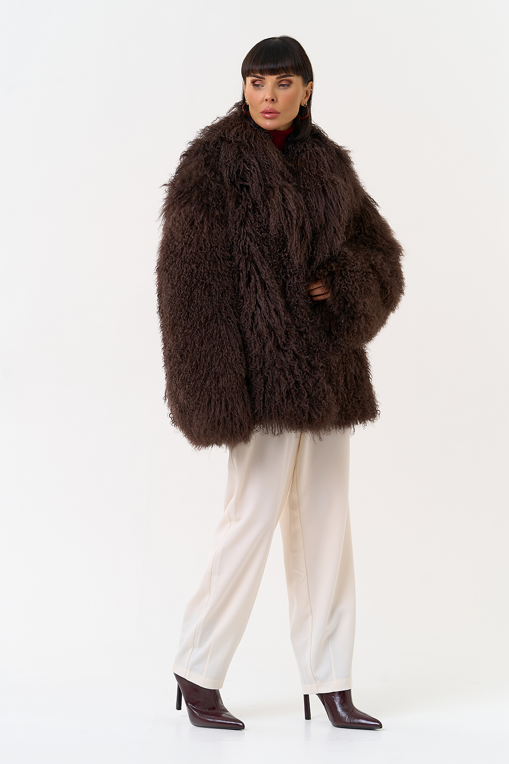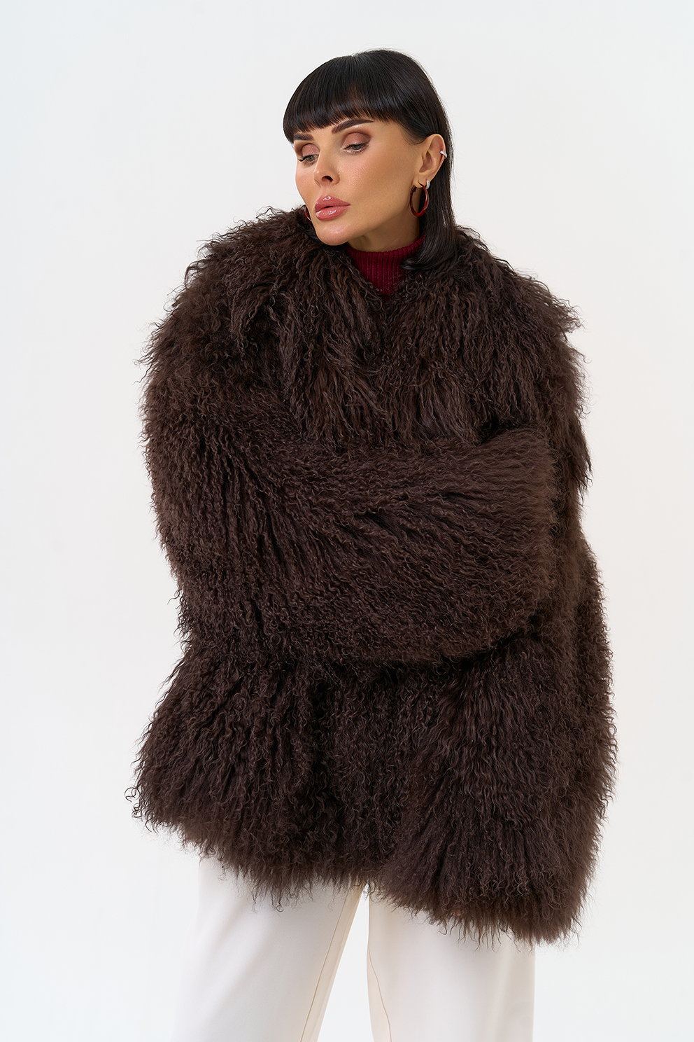 Женская шуба из меха ламы (коричневый)